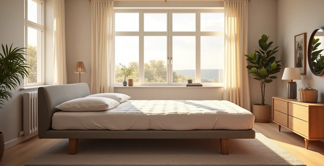 Le piège de la température va au-delà du matelas froid. Les matelas fins des convertibles ne régulent pas la chaleur corporelle comme un matelas traditionnel de 20 cm. Vous devez prévoir une couette plus légère que d’ordinaire, même en hiver, et renforcer l’aération de la pièce. L’excès de chaleur nocturne perturbe le sommeil profond sans que l’invité en identifie nécessairement la cause.